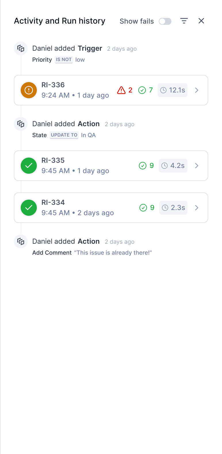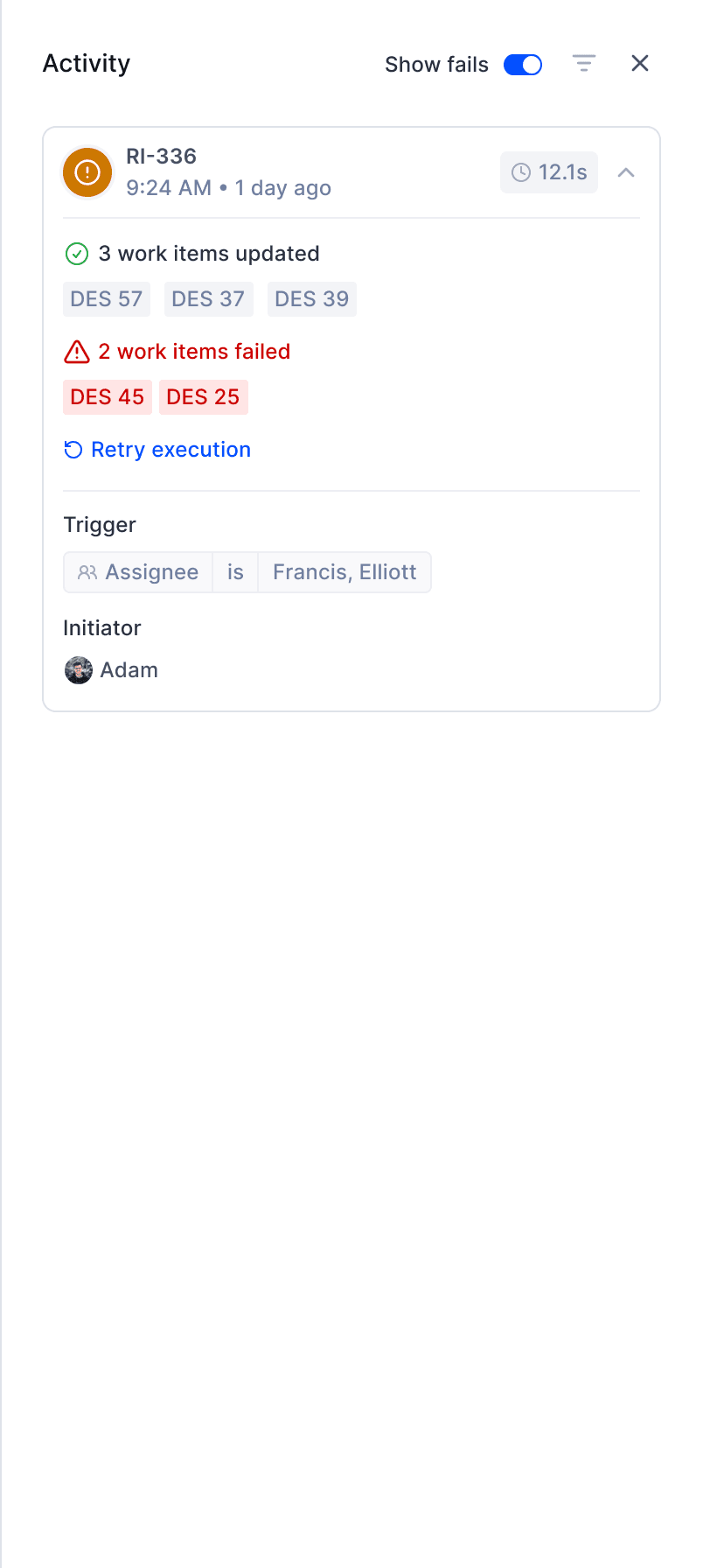 If an automation fails, admins are notified via email, mobile, and web with a link to review and fix the issue.