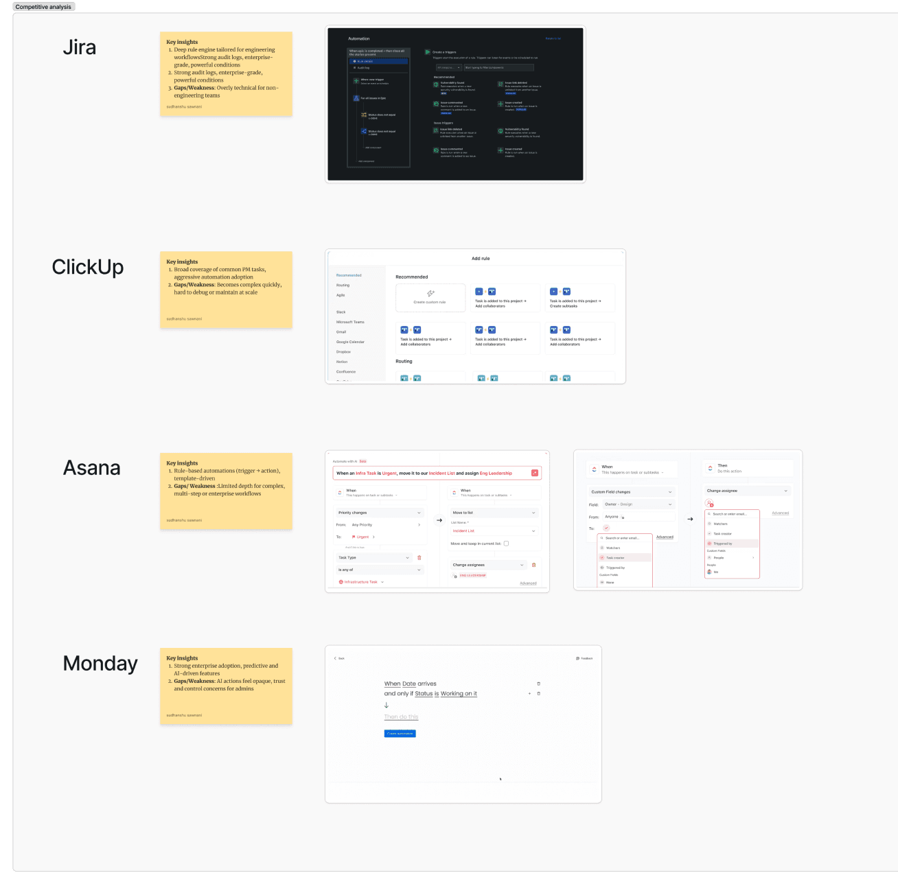 We reviewed GitHub issues, Discord support requests, and had direct conversations with stakeholders who regularly interact with customers. I also studied competitor platforms to analyze their automation flows, patterns, and information hierarchy, helping us understand what’s working, how users engage with interfaces, and what truly supports their needs.